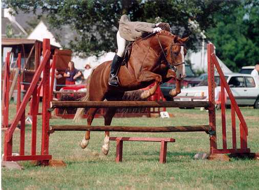This is my superb stallion Everest Eternal Flame, His nick name is Santa(don't ask me why, he was called that when I brought him as a three year old!!) He is a 18 year old Anglo arab x Welsh cob and he is 15hh2. He does whatever you ask of him as you can see! He is a grade A showjumper and works to Advanced Medium level dressage. He is also an intermediate standard eventer. He is always in a snaffle except in advanced dressage tests where it is compulsory to wear a double bridle and when hunting where he wears a dutch gag as he gets so excited!! He is available to stud at 30 credits for more info see main Equicentre pages!